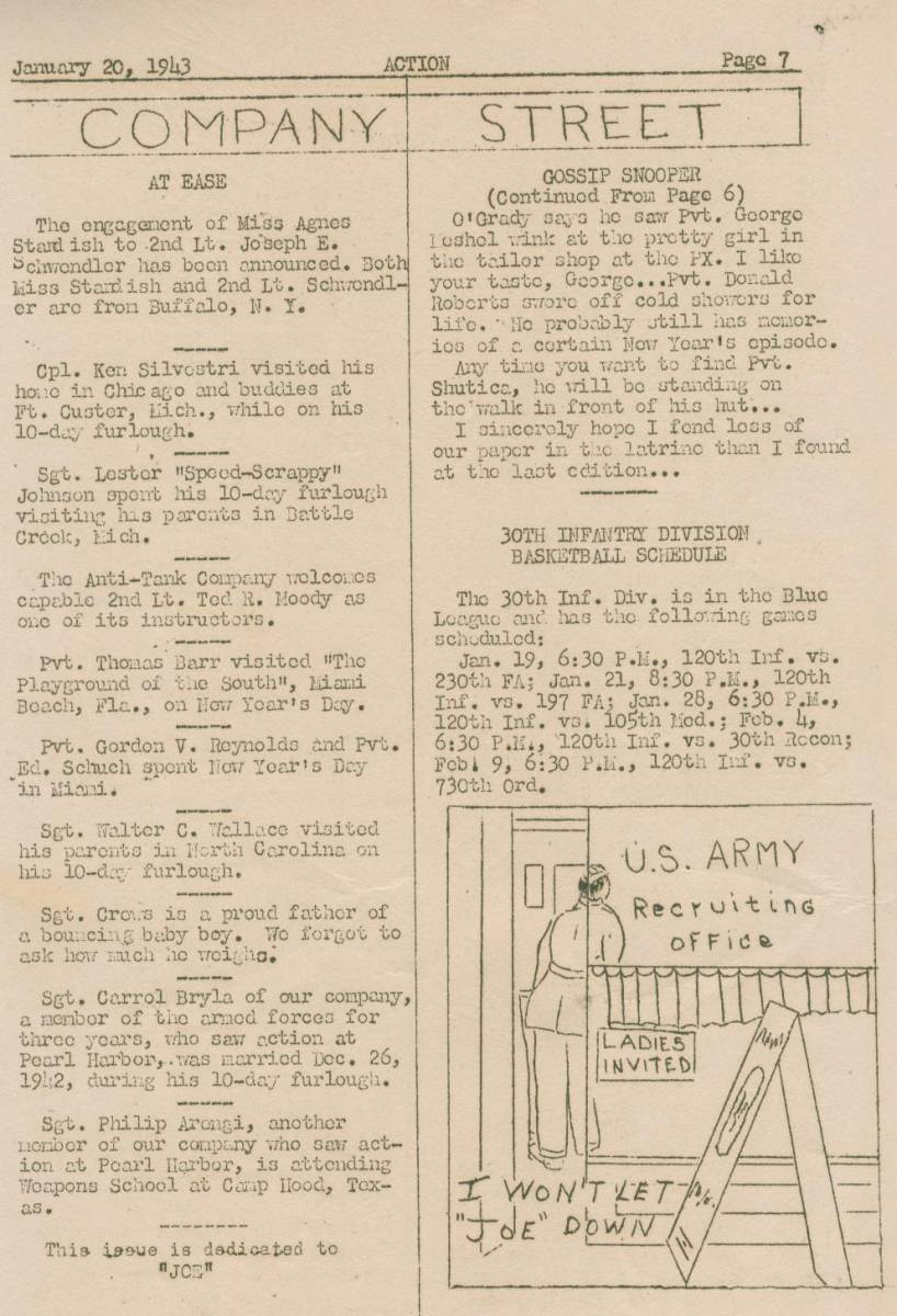 Jan 20, 1943 Camp Blandings Action Anti Tank Vol 1 No.2 Published Semi-monthly by the Anti Tank Company 120th Infantry 30th Division Camp Blandings Florida. Established Dec 23, 1942