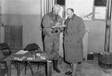 05.30 Uhr weiter an Arko 117 07.40 Uhr: Chef – Kdr. 9.P.: Lageschilderung durch Kdr. 9.P.D. Einbruch Mausbach bereinigt bis auf 2 Bunker, um die Kampf noch im Gange. Gegenstoß auf Vicht und auf Zweifall angesetzt. Erfolgsmeldung steht noch aus. 07:40hrs Situation report by Commander 9 Panz. Div: Breakthrough at Mausbach cleared except for 2 bunkers were fighting still is going on Counterattack at Vicht and Zweifall started, report about outcome not available yet. 08.40 Uhr: Chef – Ia 116.Pz.Div.: Pz.A.A. von starkem Inf.-und Panzerfeind auf die Bahnlinie, die von Burdscheit nach Nordosten führt, zurückgedrängt. Dort bereits aufgefangene Teile M.G. Btl. Eingesetzt. Vordere Linie verläuft am Bahndamm. Div.Kdr. ist zur Klärung der Lage nach vorne gefahren. 08:40 Chief - Ia 116th Panz Div: Panzer Abwehr Abteilung (Antitank units) pushed back by strong enemy infantry and tanks to Railroad which runs from Burdscheit to North East. Overthere already gathered units of Mg Battalions put into action. Frontline is Railroad. Division commander went up there to find out about situation. 08.45 Uhr: Auf Befehl Gen.Kdo. soll Autobahnbrücke bei Lughem gesprengt werden. Brücke ist zugleich als LS-Bunker für die Zivilbevölkerung ausgebaut. 9.P.D. bittet um Entscheidung, ob trotzdem gesprengt werden soll. 8:45: At order of General Command the bridge over highway at Lughem has to be blown up. Bridge has also function as anti-airraid shelter for civilians. 9th Panz Div. requests to evaluate if the bridge should be blown up despite this. 09.15 Uhr: Ia 116.P.D. – O 1: 08.15 Uhr 25 Panzer mit zahlreichen MTW auf Straße Brand nach Eilendorf, drehen anscheinend auf Straße nach Stolberg ab. Gleichzeitig starker Nebelbeschuß auf Westwall beiderseits der Straße nach Stolberg, außerdem – anscheinend gleichzeitig – Angriff auf eigene Sicherungen bei Eilendorf. Starkes Gewehr- und MG-Feuer hörbar. Aufklärung fand Eilendorf 08.00 Uhr feindfrei. 09:15 Ia 116th Panz. Div. to O 1 8:15 : 25 tanks with many trooptransportcarriers on the road from Brand to Eilendorf, which are heading obviously to the road to Stolberg. At the same moment heavy smoke laid at Westwall on both sides of road to Stolberg.and besides that, also at the same moment attack at our strongpoints at Eilenberg. We can hear heavy gun and machingunfire. Recon found Eilenberg at 08:00 hrs free of enemy. 09.25 Uhr: Chef – 9.P.D.: Lageorientierung. 9.P.D. hat Auftrag, mit gepanzerter Gruppe Feind anzugreifen und ihn hinter den Westwallriegel zurückzuwerfen. Höchste Eile geboten. 09:25: Chief 9th Panz. Div Statusreport: 9th Panz Div. is ordered to attack enemy with armored units and push him back behind Westwall with haste ! 10.05 Uhr: 49.I.D. – O 5: Aufklärung hat Negertruppen und einige Panzer in Holset festgestellt. Im übrigen Ruhe im Abschnitt. 10:05 : 49th Inf Div.- O 5: Reconmission has detected Negrotroops and some Tanks in Holset. Besides this all quite in this sector.