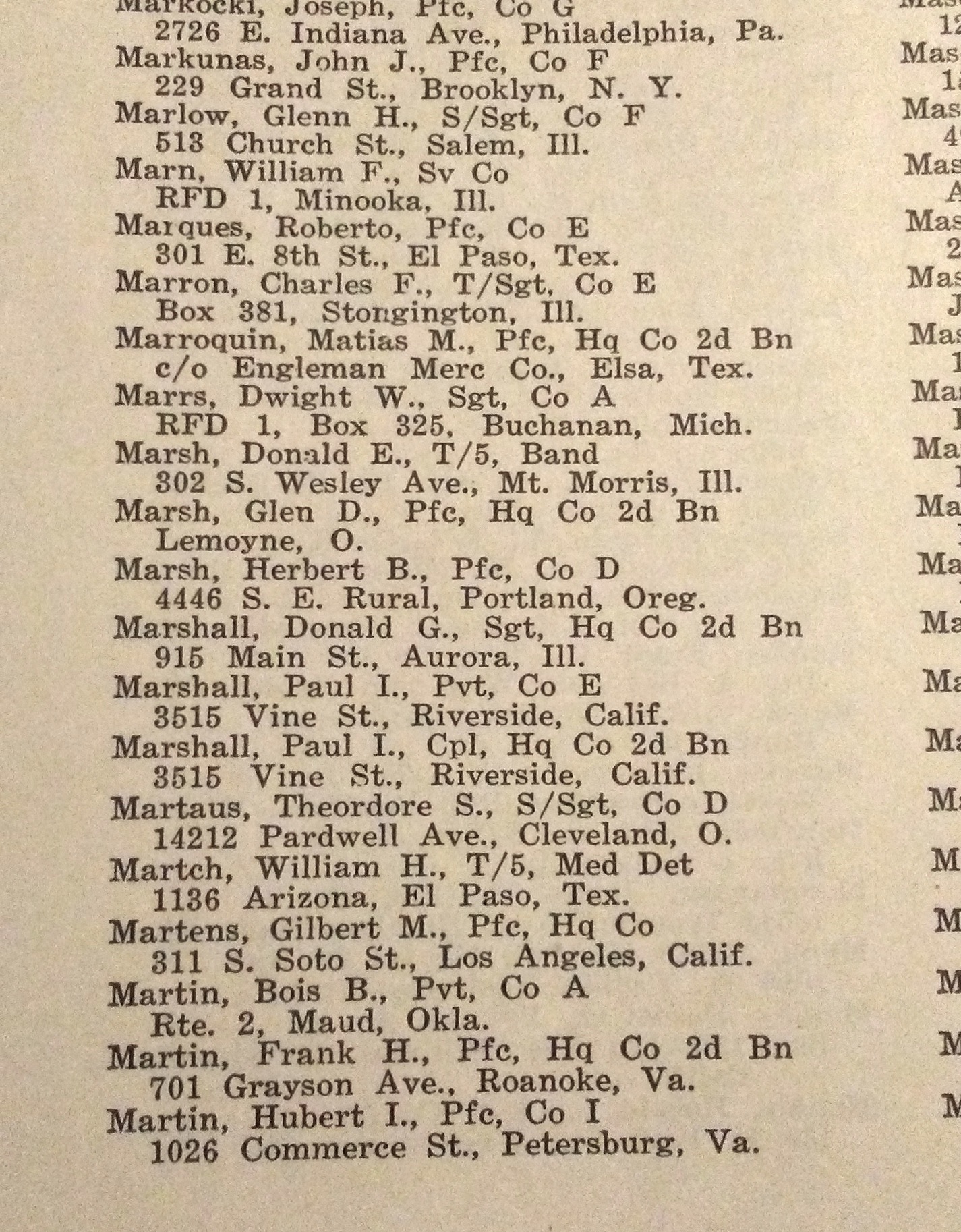Marshall Donald G - 129th Inf Regt Roster