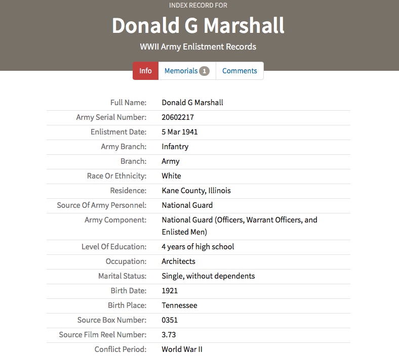 Marshall Donald G - WWII Army Enlistment Record